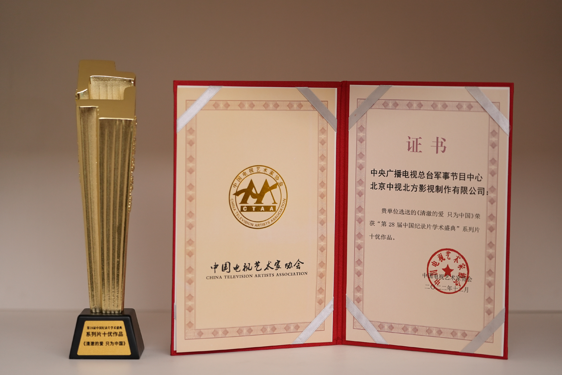 2022年(nian)12月31日(ri),中(zhong)視北方(fang)選送的(de)《清(qing)澈的(de)愛 隻爲(wei)中(zhong)國(guo)》榮獲中(zhong)國(guo)電(dian)視藝術(shù)傢(jia)協會授(shou)予的(de)“第28屆中(zhong)國(guo)紀錄片學(xué)術(shù)盛(sheng)典”係(xi)列片十優(you)作(zuò)品(pin)。